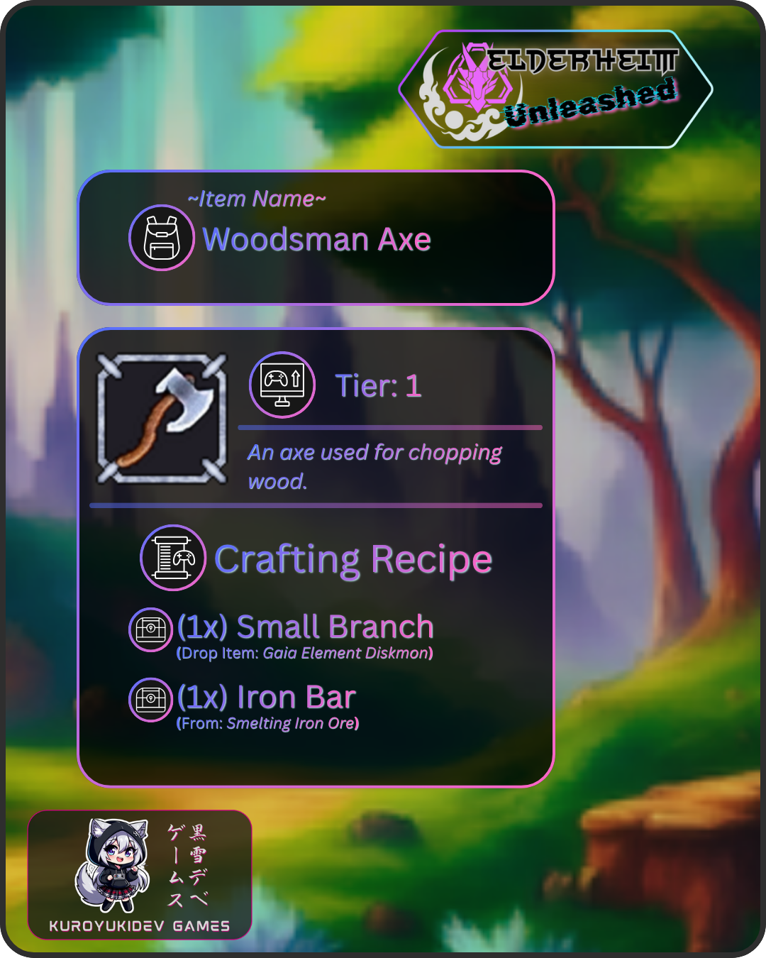 Note the usage of your bordered panel asset as the base layer of the Axe Icon. I’ll be using a total 4 different colors of your border assets for the 4 tiers of the items and equipment and a few other colored border assets for the “unique purpose” items in my game project (from the same pack as the silver colored border in this preview image for the 4 tier colored borders and I’m still deciding on which of your other borders I’ll use for stuff like quest items, etc.)