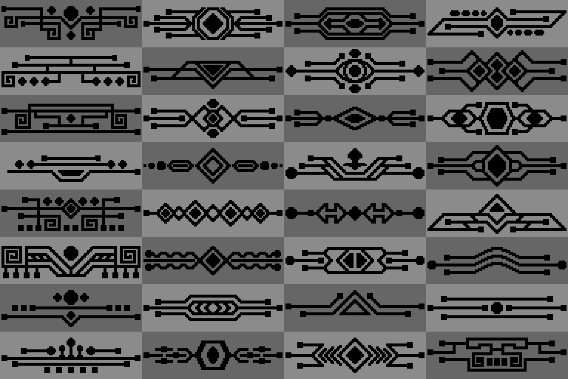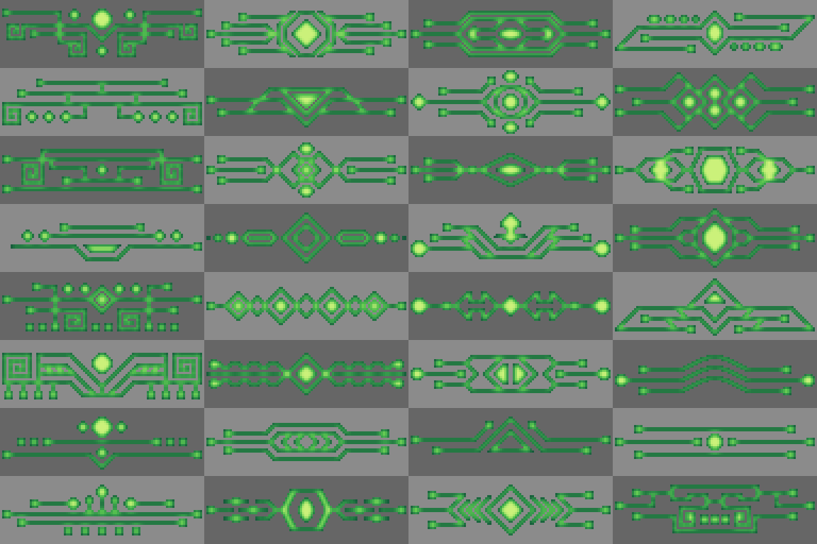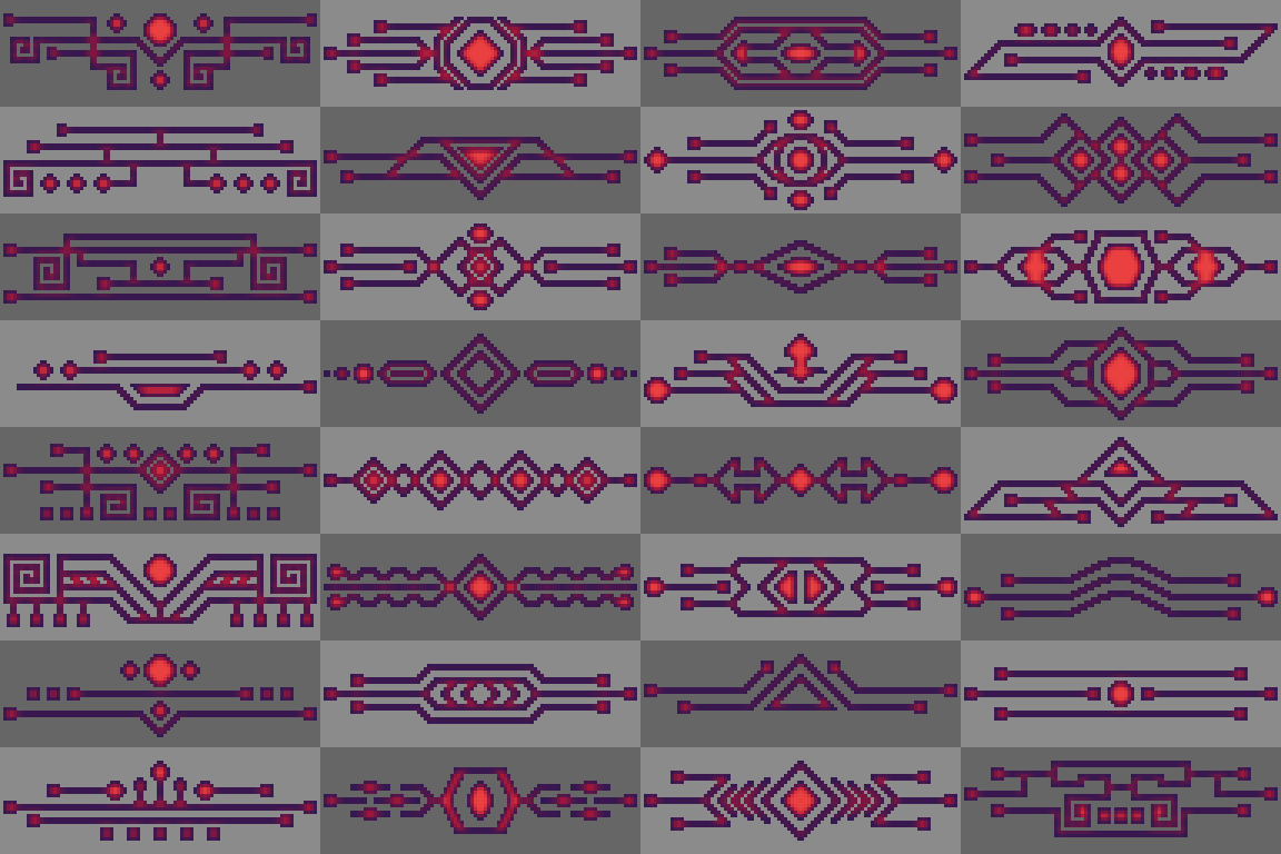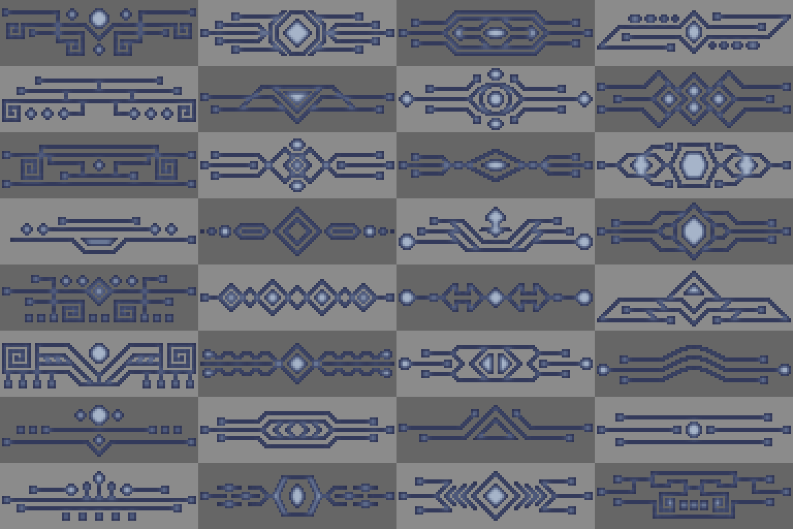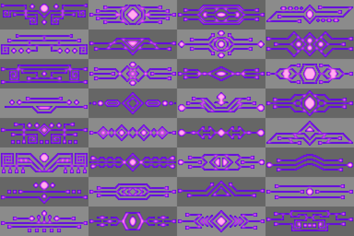 Free Retro Decorative pixel elements frames, button, UI, panels, chat box . . . part 3 with 7 style color and canvas 96x32