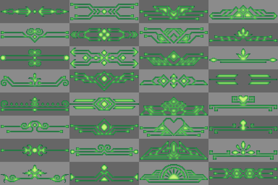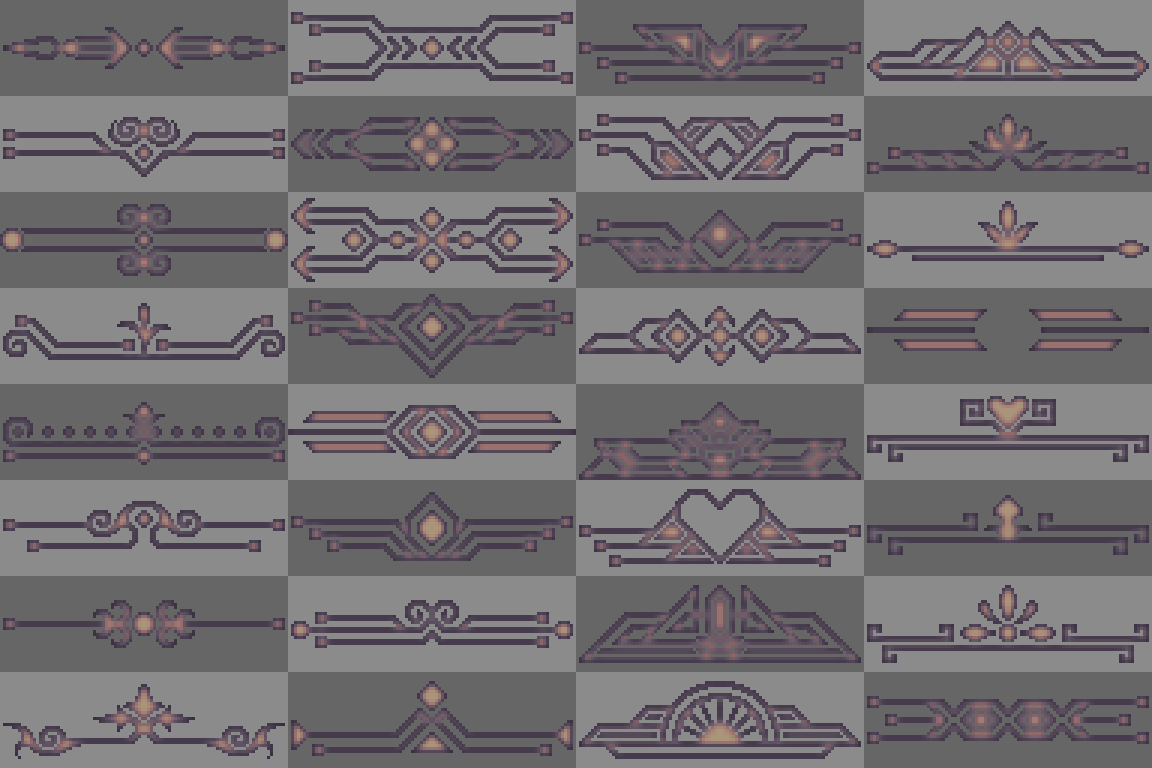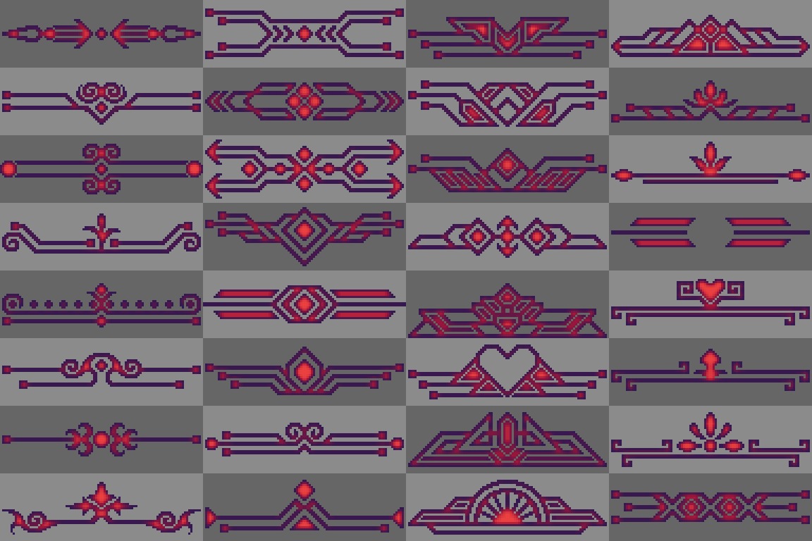 Free Retro Decorative pixel elements frames, button, UI, panels, chat box . . . part 4 with 7 style color and canvas 96x32