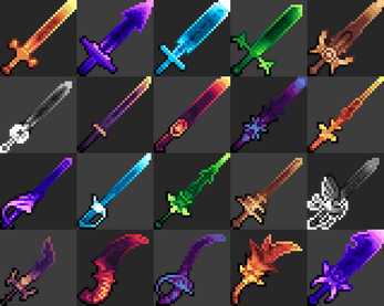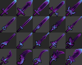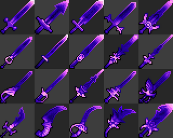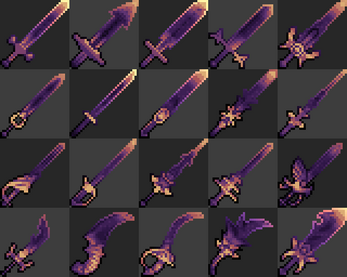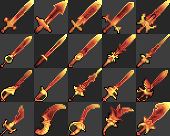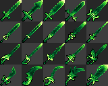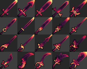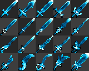 More complicated ones can work, but I feel they would need a normal sprite to go with them. With a normal sprite, one could layer the effect over it for a magical shine or sheen. Alternatively one could mask out the hilt and guard giving the blade a magical or lightsaber feel to it.